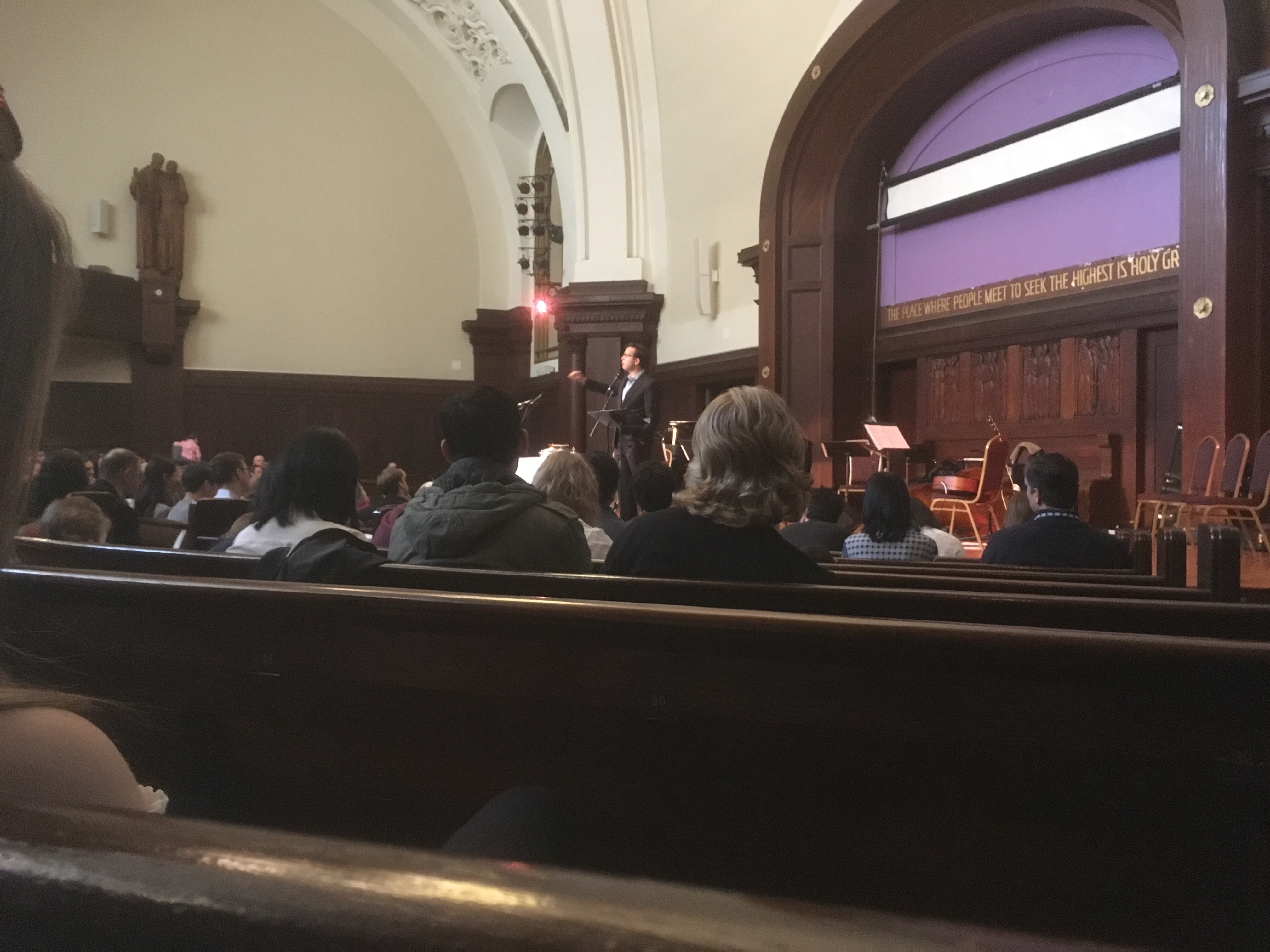 I made it, early in the morning by my standards, to the Center for Ethical Culture where Redeemer Pres Lincoln Center was having its inaugural service. Due to misreading a text, I got there 40 minutes late, but still in time to hear the sermon, which was on the story of Esther and how, even though she was unable to behave exactly as a “good” Israelite or a “good” modern American feminist should, she was still able to persevere and stand up for her people in a difficult time. There was a great evangelism session afterwards, training the new church members in how to effectively witness to their community without being obnoxious or just remaining invisible. The venue is in a great spot, right on the park, and has a great sanctuary, which will certainly serve them well as they seek to expand the ministry of Redeemer Pres, which has recently undergone efforts to try to separate the different locations in the city from each other, to strengthen more of the local bonds that exist and are growing at each location. After church and the training I joined Andrew Macmahan, an architect friend from MSU who lived with me in the MANsion (Rip) for a semester, and his friend Lasseter for lunch at a diner under Andrew’s apartment near Lincoln Square. We talked about some of the architecture that was around us, my experimental physics experiences and career plans, as well as Lasseter’s time at Moody Bible College in Illinois and his time working there and running a startup media and communications firm.