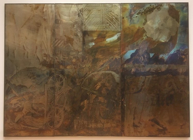 One thing that did stick with me though was the very end of the Robert Rauschenberg exhibit. I walked through a lot of his stuff that was really experimental and strange, including sketches and sculptures, as well as his famous plain white canvases that are truly baffling, but towards the end of the exhibit there was a video showing a bizarre, modern ballet that he helped to design, as well as several large print-collage works. Something kind of clicked for me after staring at one of the more visually striking prints, listening to the monotonous ballet music, and reading his statement “I’ve always been attracted and tempted into nearly any situation where the final work was the result of more than one person’s doing. That’s why I like dance, music, theater, and that’s why I like printmaking, because none of these things can exist as solo endeavors.” I’m definitely still a late renaissance and impressionist kind of person, but I anticipate coming back to MoMA in the future and gradually gaining more of an appreciation for the kinds of art that have developed in the last century.