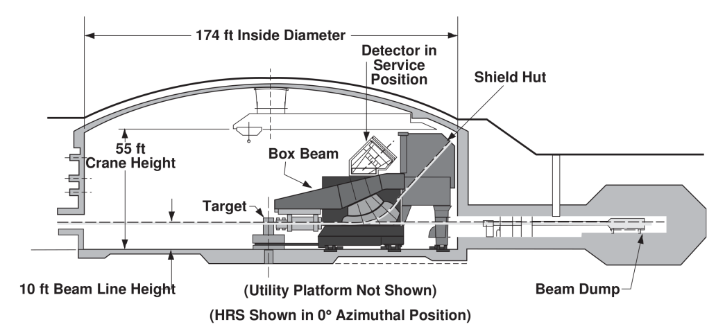 The beam is scattered against isotopically pure targets, made of matter of interest to the experiments. Targets at JLab may range from hydrogen or deuterium gas or other light isotopes with interesting quantities of neutrons and protons to pure Calcium-48 or Lead-208 targets. The goal for most experiments is to interact the electrons with the entire nucleus of the target’s atoms in one simple interactions. Or the goal may be to probe inside of the nucleus’ constituent protons and neutrons or to excite higher energy excited states of the nucleus or its constituents. The key to understand is that the incoming beam interacts with the target nuclear matter in a way that reveals information about its spatial distributions and possible spectrum of excited energy states.