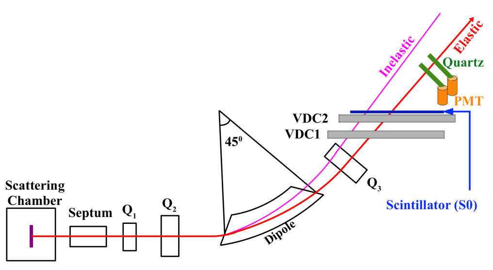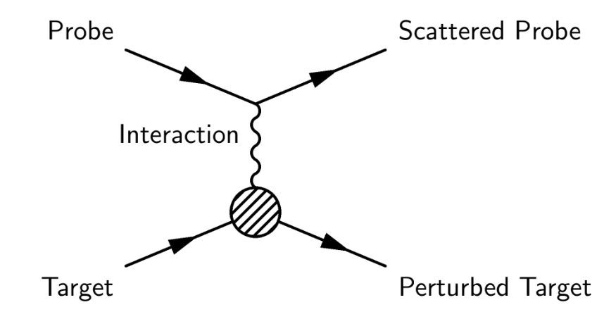 Different scattering processes taking place in the same scattering experiment can be distinguished by measuring the energies of the outgoing particles that produce two different probability distributions of scattering taking place at different angles and different energies. Nuclear physics experiments at Jefferson Lab can be thought of as very large-scale systems (typically because of the need for large magnets to spread out particles according to their outgoing momentum) designed to measure relatively rare interactions and to place detectors at specific locations relative to the center, to measure the high and low probability rings in the quantum-mechanical scattering diffraction patterns. These nuclear experiments measure relative scattering probability rates as a function of energy and angle and use that information to infer the size, quantities, and possible interactions and excited states of the nuclear targets. High energy particle physics experiments are similar, though they typically are more interested in studying the interaction forces and intermediate decay product particles involved in the scattering interactions directly, rather than the targets that are interacted with.