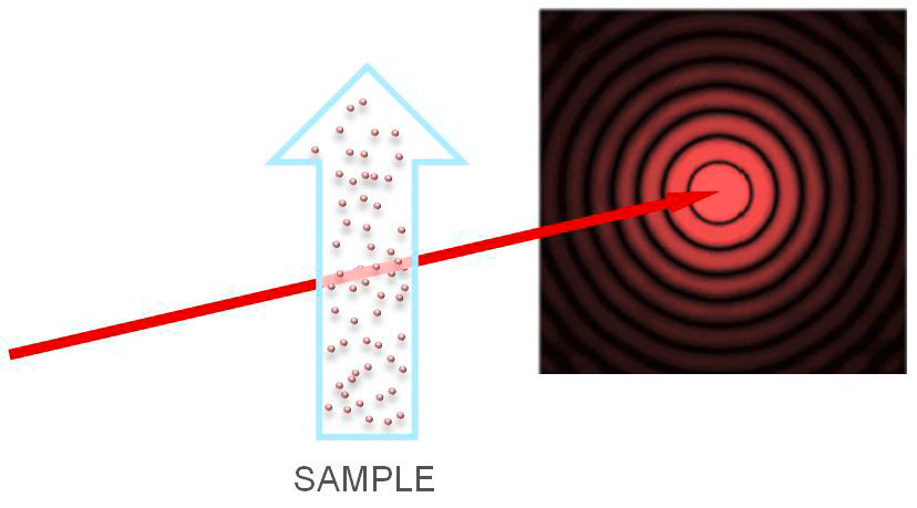 The two figures above describe the double slit experiment for laser light and a point-spread function diffraction pattern for coherent radiation scattering past a small spherical target sample collection.